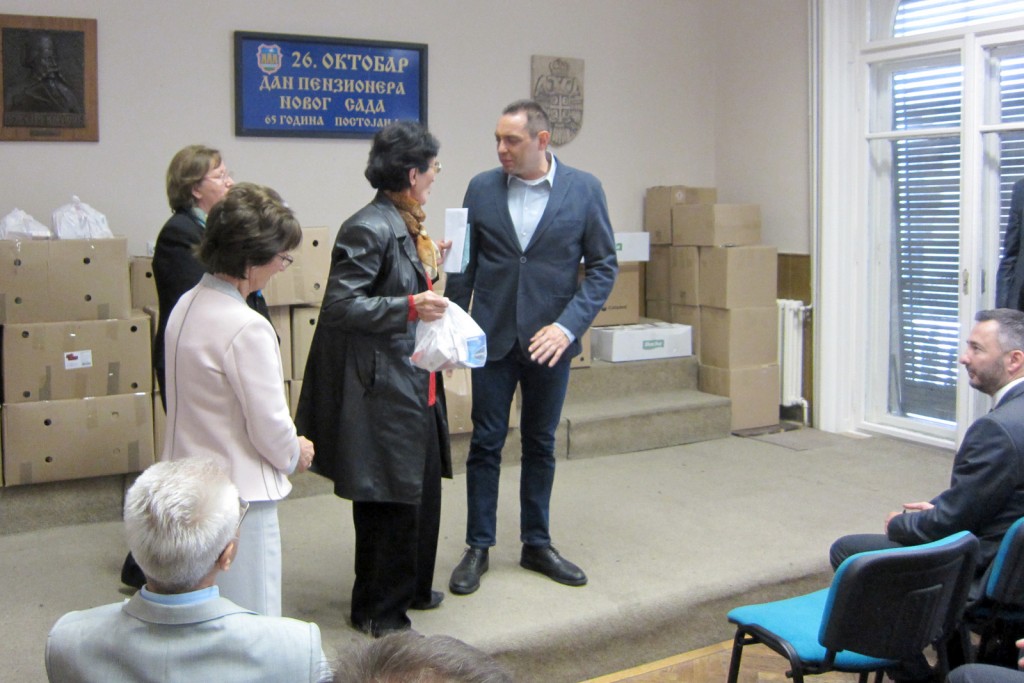Подели пакета у Удружењу пензионера града Новог Сада, поред покрајинског секретара Предрага Вулетића, присуствовали су министар за рад, запошљавање, борачка и социјална питања Александар Вулин, представници републичког и покрајинског ПИО фонда.