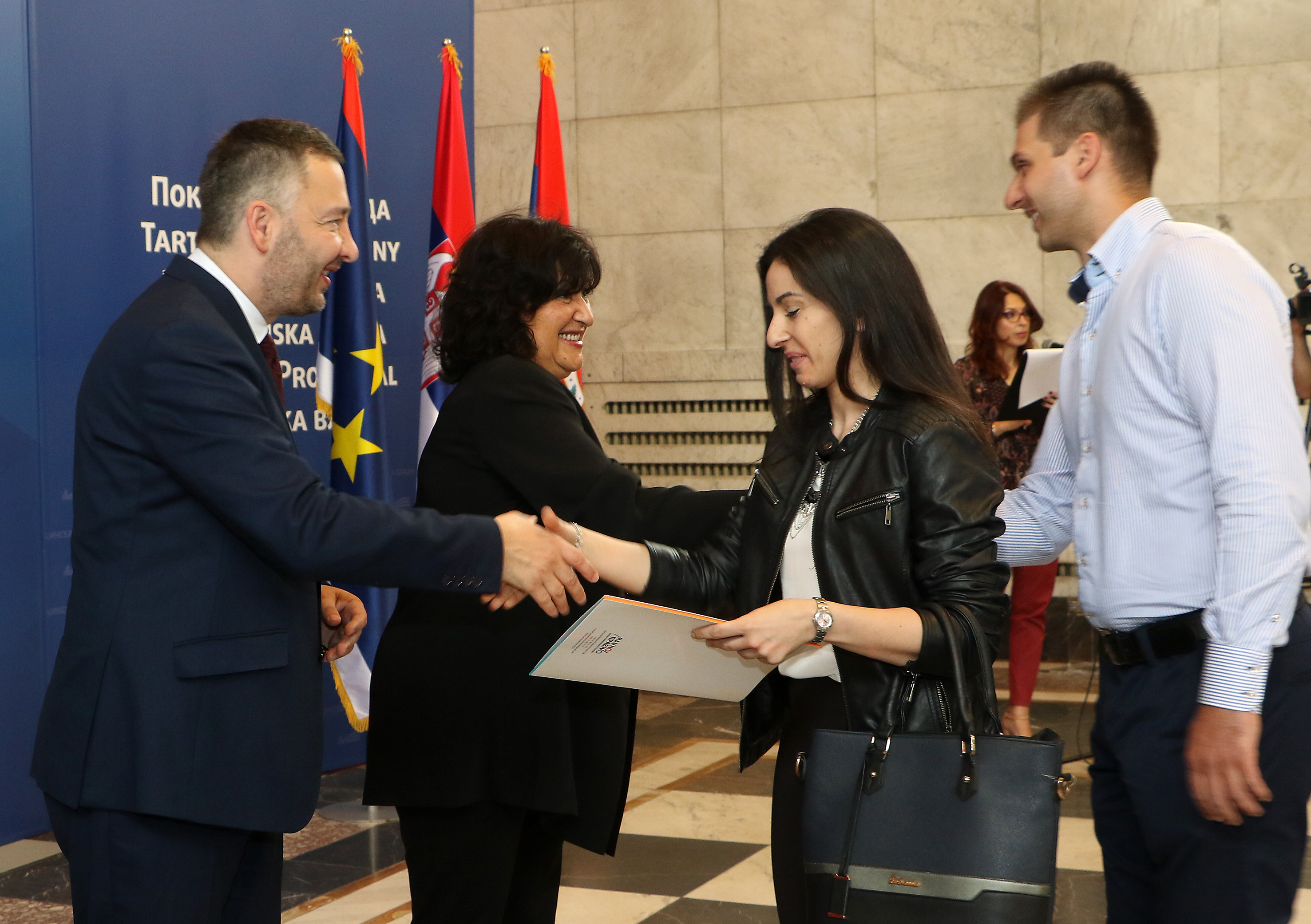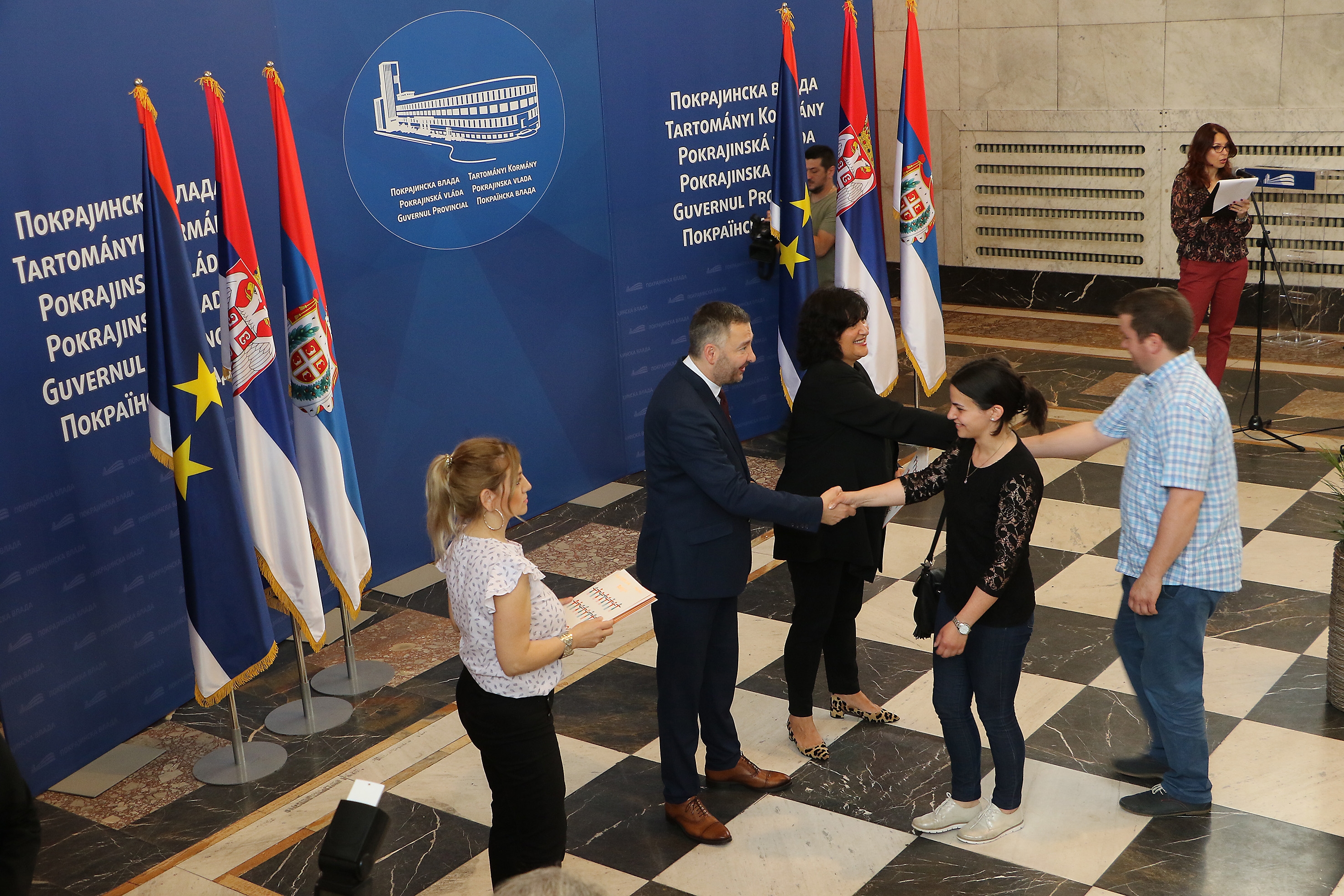 Нови Сад, 06. јун – У Свечаном холу Покрајинксе владе покрајински секретар за социјалну политику, демографију и равноправност полова Предраг Вулетић и директорка Завода за равноправност полова Диана Миловић, уручили су уговоре младим брачним паровима за куповину сеоских кућа са окућницом.